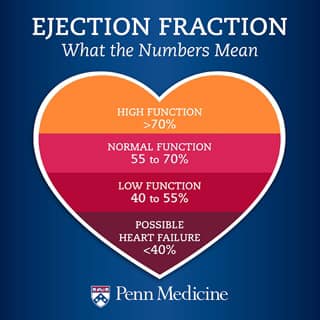 When EF is lower (for example below 40%), it can indicate that your heart is not pumping as strongly as it should.